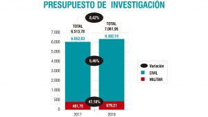 Las palabras de Cosce hacen referencia al hecho de que, sobre el papel, las cifras del presupuesto para I+D+i en 2018 muestran un alza de 548,17 millones de euros, lo que representa un 8,42 por ciento más que en 2017.
