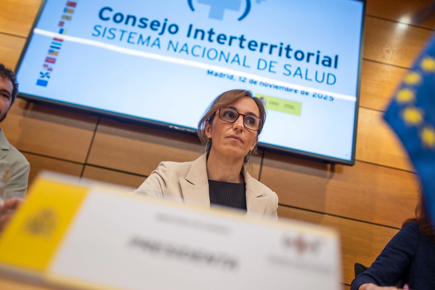 La ministra de Sanidad, Mónica García al término de la reunión, ha celebrado que los consejeros populares "hayan reculado y recapacitado".